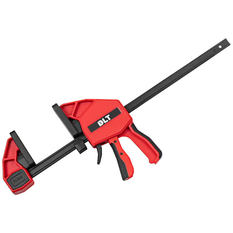 Струбцина пистолетная быстрозажимная DLT 300 мм позволяет быстро фиксировать заготовки с целью их соединения или обработки, обеспечивает максимально надёжный захват, защищённый от срыва. Опорная губка перемещается и фиксируется по всей длине направляющей при помощи рукоятки, а также может переставляться на другой конец направляющей, что позволяет использовать струбцину "на разжим".