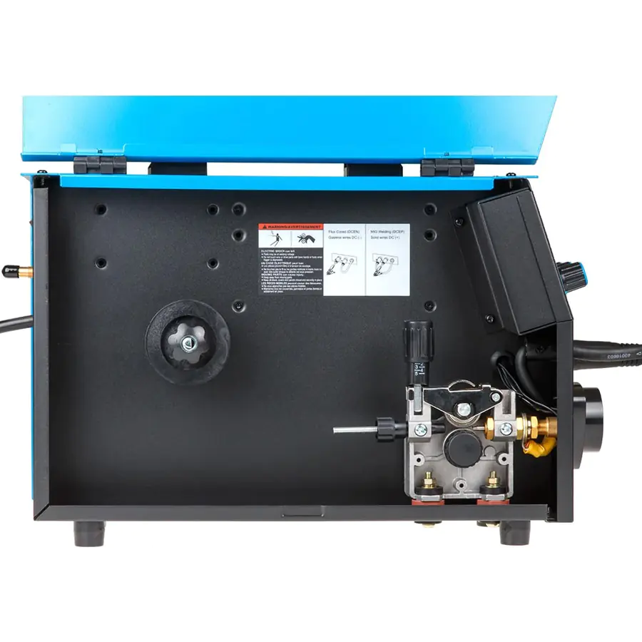 - Возможность смены полярности для сварки проволокой без газа (FLUX).