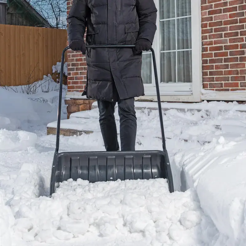 Пластиковый движок для уборки снега 690x470x1420 мм, стальная рукоятка, в отличие от традиционной зимней лопаты, предназначен для более быстрой очистки больших территорий. Широкий ковш 690 мм выполнен из морозостойкого полипропилена. Специальные ребра жесткости на полотне повышают устойчивость движка к высоким нагрузкам. Эргономичная рукоятка позволяет выполнять большой объем работы, не прикладывая усилий.
