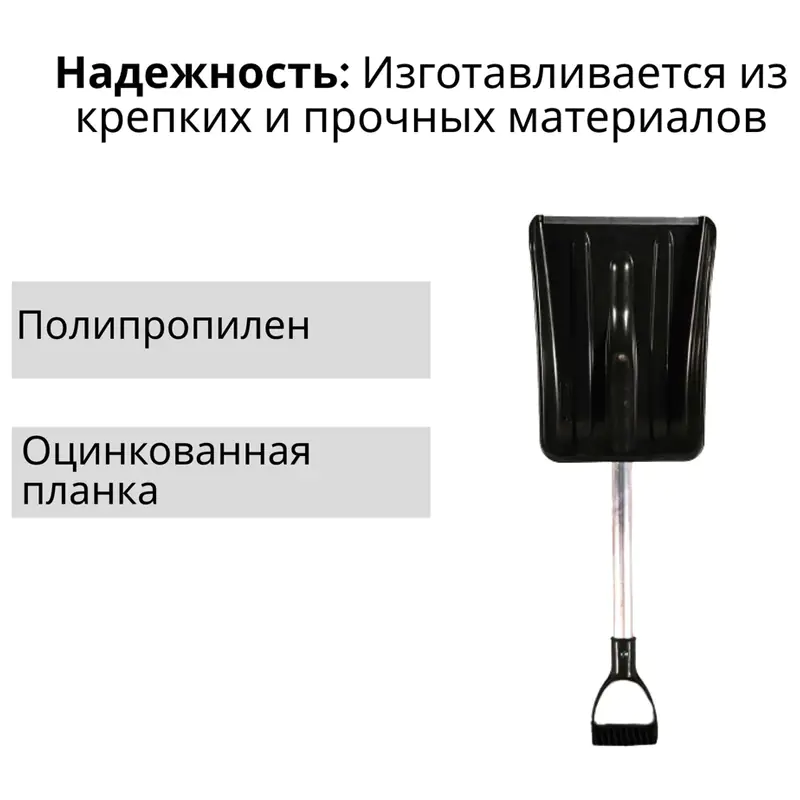 Лопата оснащена V-образной рукояткой, обеспечивающей крепкий хват и легкость отбрасывания снега. Такой инструмент станет главным помощником автомобилиста и позволит расчистить снег в районе парковки.
