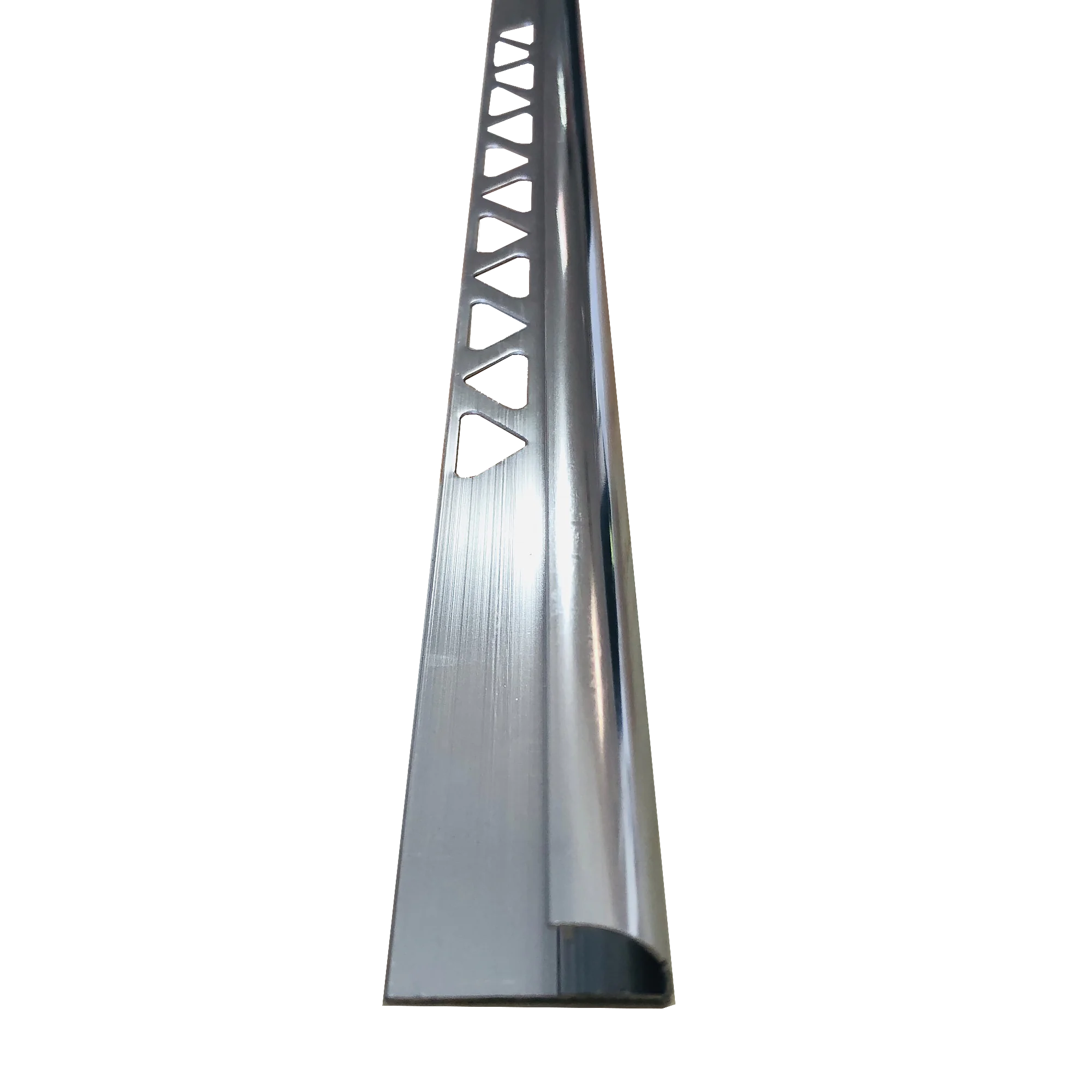 Алюминиевый уголок O10 полированный имеет полукруглую форму и может быть использован под любые покрытия наружных углов. Применяется для окантовки наружных углов облицованных плиткой. Защищает углы от сколов и механических повреждений. Скрывает погрешности плохо выровненных стен и ошибочной подрезки плитки. Длина 2,7 м.