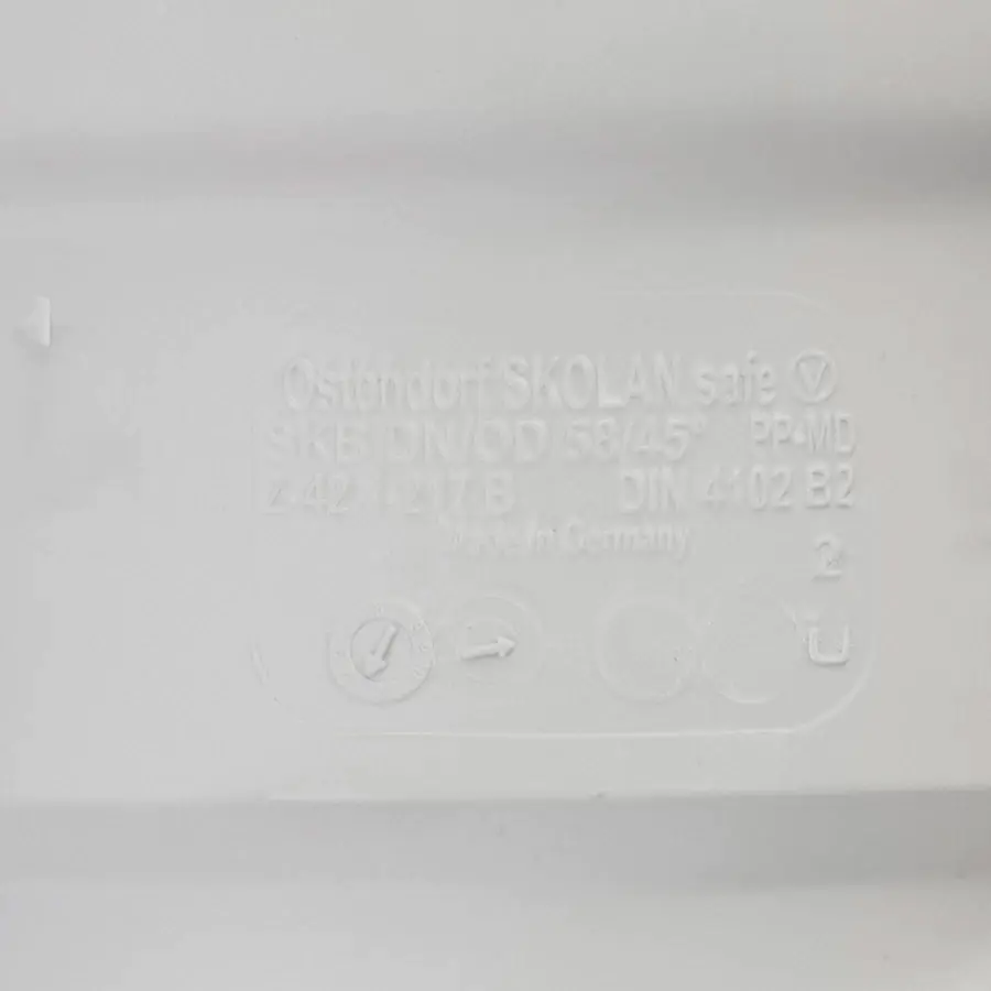 Отвод бесшумной канализации Ostendorf Skolan 58 мм, 45 градусов используется для обустройства поворотов трубопровода и соединению элементов системы под необходимым углом. Для присоединения труб, сифонов и прочих фасонных частей диаметром 50 мм потребуется переход 58х50 мм.