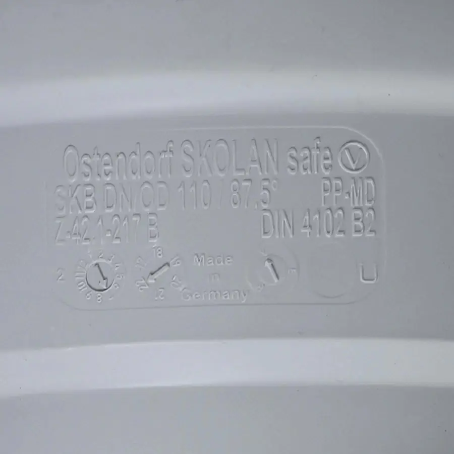 Отвод бесшумной канализации Ostendorf Skolan 110 мм, 87 градусов используется для обустройства поворотов трубопровода и соединению элементов системы под необходимым углом.