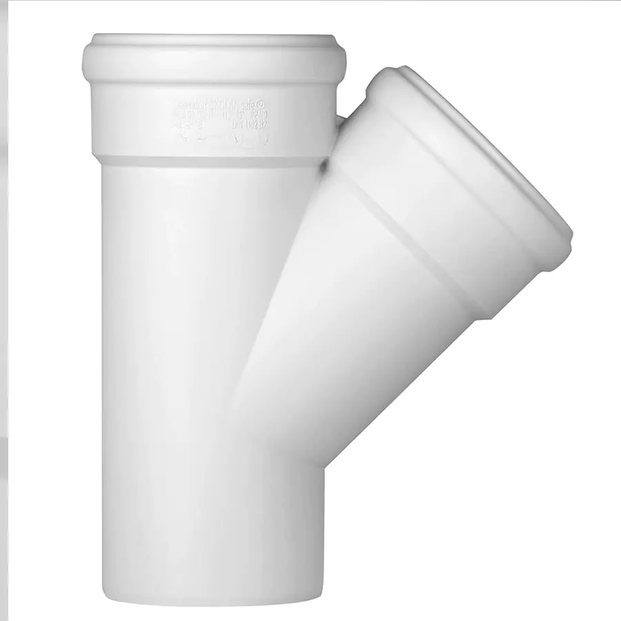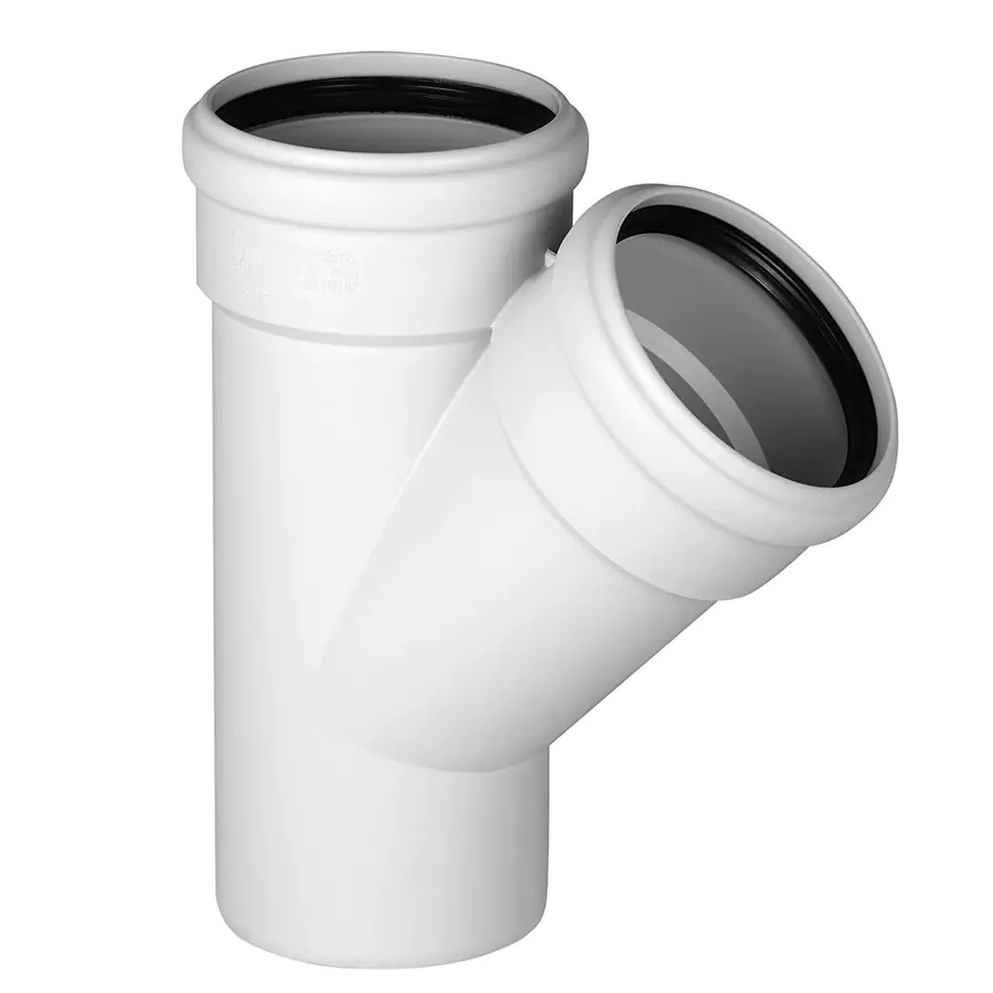 Тройник бесшумной канализации Ostendorf Skolan 110х110 мм, 45 градусов предназначен для соединения отводных(дополнительных) линий трубопроводов и точек подключения сантехнических приборов в одну систему водоотведения под определённым углом.