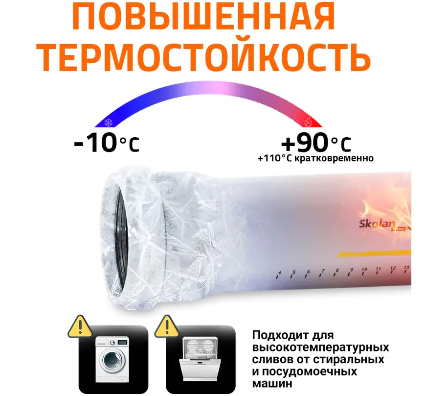 - Выдерживаемая температура стоков 90°, кольцевая жестокость SN16, срок службы - 100 лет.
