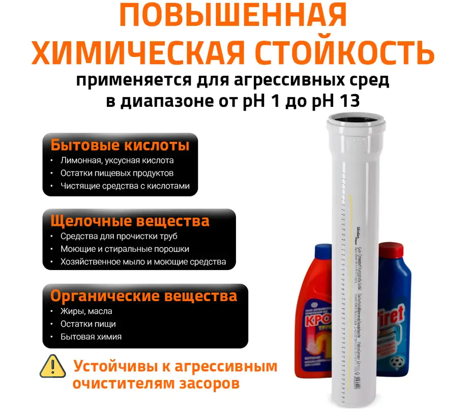 - Точная геометрия, усиленный раструб и запатентованное трехлепестковое уплотнение обеспечивают повышенную надежность и герметичность соединения. Система может применяться не только как хозяйственно-бытовая, но и как ливневая с давлением до 2 Атм.