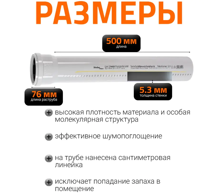 Труба бесшумной канализации Ostendorf Skolan 110х500 мм предназначена для отведения сточных вод внутри зданий и обеспечения комфорта по шумоизоляции. Она оснащена раструбным соединением и немецким уплотнительным кольцом, что обеспечивает простоту и надежность монтажа.