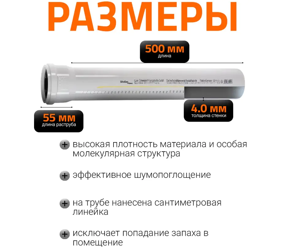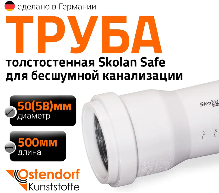 Труба бесшумной канализации Ostendorf Skolan 58х500 мм предназначена для отведения сточных вод внутри зданий и обеспечения комфорта по шумоизоляции. Она оснащена раструбным соединением и немецким уплотнительным кольцом, что обеспечивает простоту и надежность монтажа. Для присоединения труб, сифонов и прочих фасонных частей диаметром 50 мм, потребуется переход 58х50 мм.