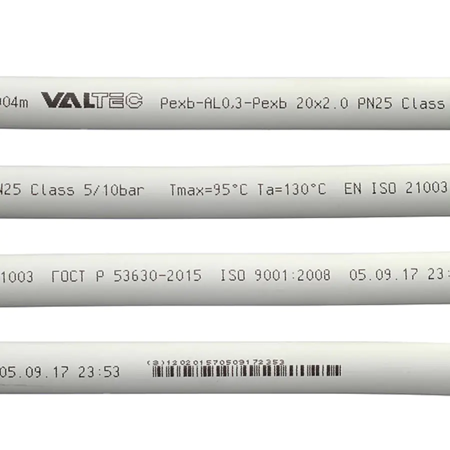 Область применения металлополимерной трубы VALTEC PE-Xb/AL/PE-Xb – системы водоснабжения, включая питьевое, радиаторного, напольного, настенного, потолочного отопления, подогрева открытых площадок, водяного охлаждения. Трубу можно использовать как для воды и незамерзающих гликолевых теплоносителей, так и для иных сред, неагрессивных к примененным материалам. Наружный диаметр – 20 мм, толщина стенки – 2,0 мм. Бухта 100 м.